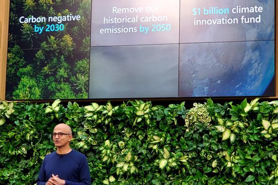 微软首席执行官纳德拉(Satya Nadella)周四详细介绍了该公司的全面计划,以消除微软对环境的影响,并为合作伙伴和客户提供相应的解决办法。