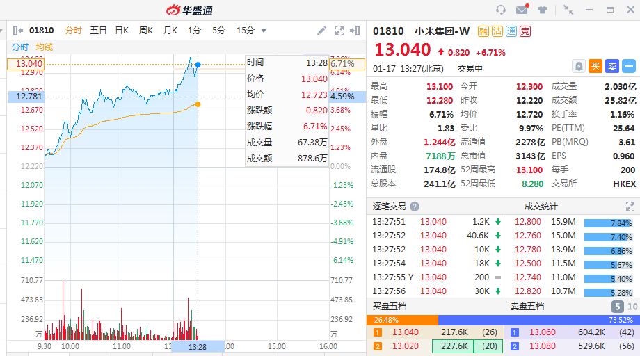 新浪港股讯 1月17日消息,小米午后股价拉升涨近7%,市值突破3100亿港元。此前恒生指数公司发布恒指纳入同股不同权公司及第二上市公司的咨询文件,投资者憧憬阿里巴巴(9988),美团(3690)及小米(1810)等股份最快在5月有望被纳入恒指,若成事的话,可望吸引更多主动及被动资金跟进相关股份,对其股价产生利好影响。