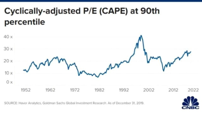 1998年,罗伯特·席勒曾在《估值比例和股票市场长期前景》的论文中详细论述了该比值的原理,并且尝试论证彼时的美国股市已经严重高估,处于“非理性繁荣”。随后的2000年3月,他出版了著名《非理性繁荣》一书。在这本书出版之后的一个月,美国互联网泡沫崩溃,纳斯达克指数崩盘,在短短7个月内股市损失接近80%。