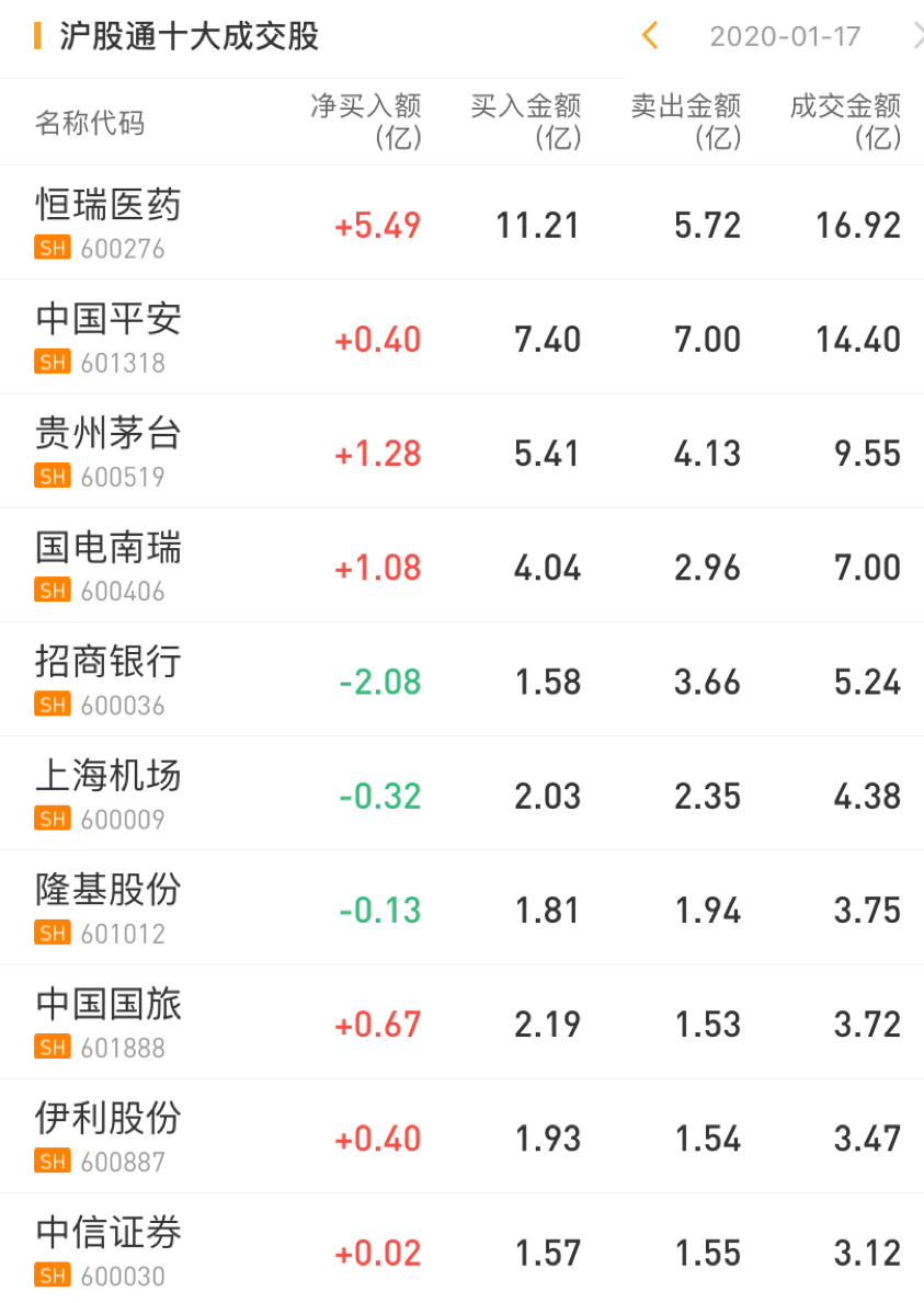 北上资金今日净流入55.68亿元,沪股通净买入恒瑞医药5.49亿元,净买入中国平安0.40亿元。