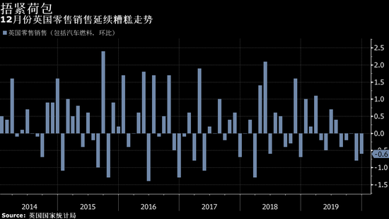 英国国家统计局周五公布的数据显示,过去五个月,英国零售销售要么停滞,要么下滑,未取得增长的持续时间创出了1996年有记录以来的最长。第四季度降幅为1%,创2017年初以来的最大,且令经济承压。