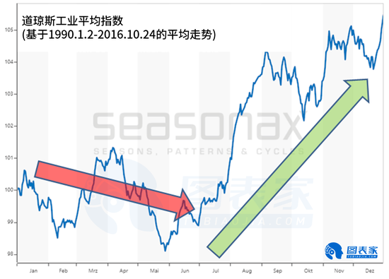 由图可以看出,美股市场在上半年通常倾向于横向波动。