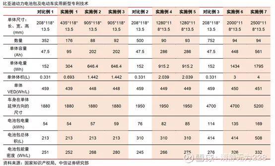 LFP“刀片电池”体积比能量密度最高可提升 30%以上,预计成本下降 30%。根据国家知识产权局查询到比亚迪“刀片电池”专利,仅通过“刀片”电池专利技术,可以使得普通电池包体积比能量密度从 251Wh/L 提升至 332Wh/L,提升比例达 30%以上,同时由于单体电池本身可承担机械加强作用,使得电池包的制造工艺简单,制造成本降低。