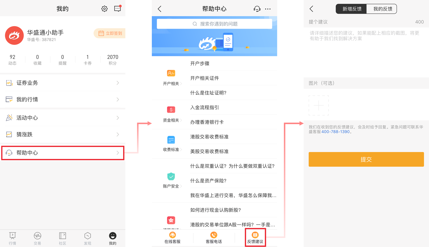 以上就是【华盛通2.2.4】的亮点功能,还不快下载最新版本体验体验?此外,我们也想听听大家的声音,如果对我们的功能有什么想法和建议,欢迎在下方留言与我们沟通~也可以到【我的】-【帮助中心】-【反馈建议】中给我们吐槽哦。