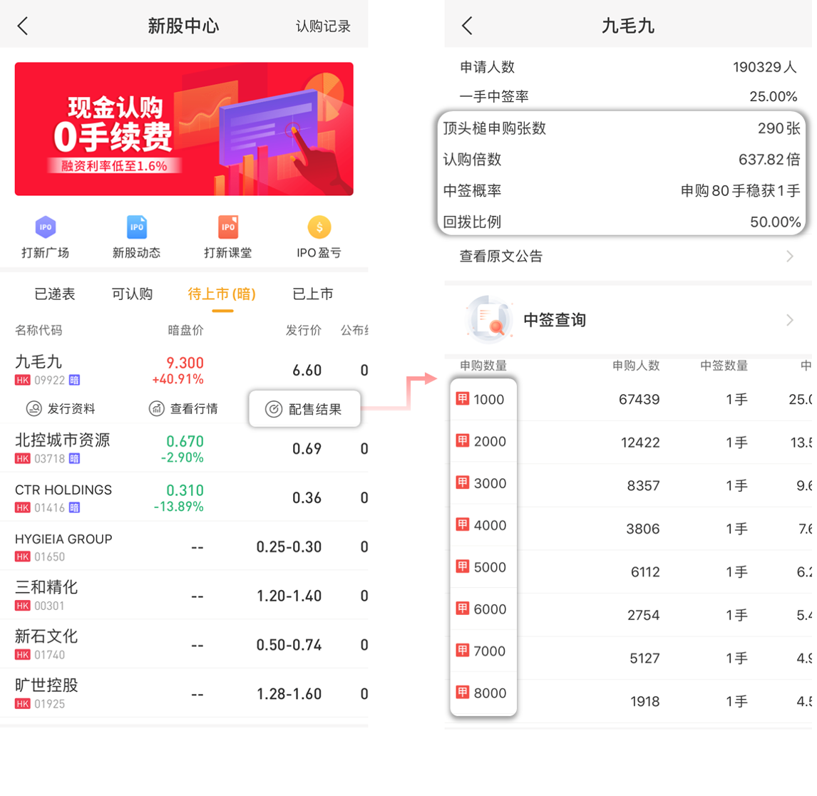 【行情】新股配售结果新增更多指标