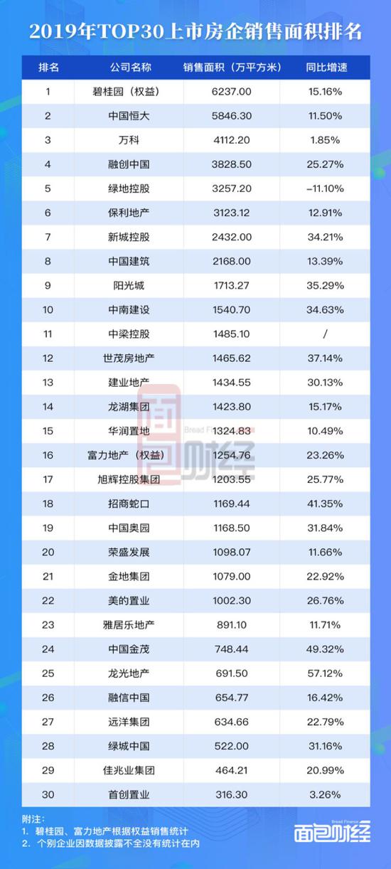 碧桂园销售面积排名第一,绿地控股唯一负增长
