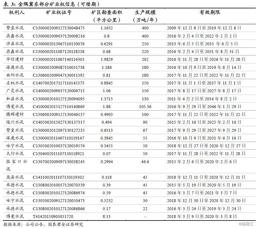 连锁反应下龙头企业成长瓶颈或突破。矿山资源收紧趋势下,其连锁反应很可能带来有资源优势的龙头水泥企业超预期的成长空间突破:未来一旦布局较差的矿山和生产线被挤出,或其所留下产能或产能指标在现有矿山政策下将难以自身找到配套的新矿山保供,最后很可能只能完全或部分将产能指标让渡于有资源的龙头水泥企业开发,共用其原来产线的矿山资源。