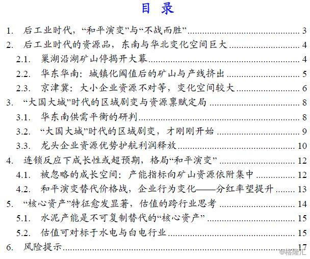 后工业化时代矿山资源化属性增强,行业集中度提升走向“和平演变”时代,而“大国大城”新城镇化方向开篇,区域布局领先的龙头或不战而胜,是估值上升的起点。