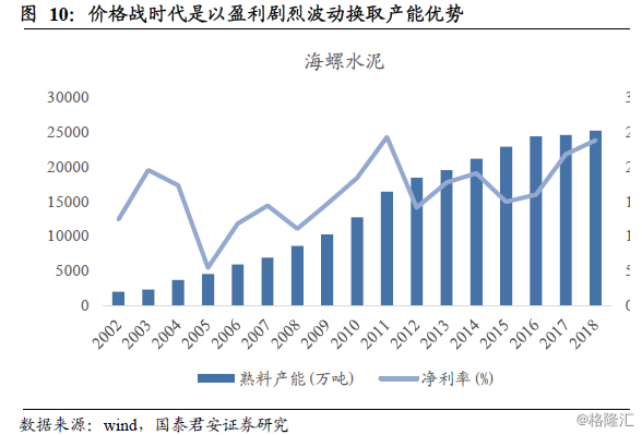 2015年前行业集中度的提升多以价格战主导。在这种产能向矿山资源靠拢的趋势下,行业将自然走向更加向龙头集中的格局。在2015年前,行业走向集中的方式主要由大企业主导发起“价格战”:大企业低市场价释放产能,毁灭小企业的利润空间后,增加自身在新增产能中的比重,或对无力坚持的小企业兼并收购。价格战的逻辑,本质在于借助行业的快速发展,大企业以盈利的波动换取产能更快增长的优势。