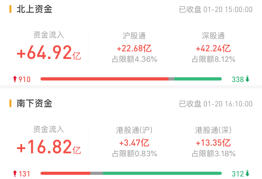 北上资金今日净流入64.92亿元,沪股通净买入中国平安11.21亿元,净买入中国国旅0.58亿元。