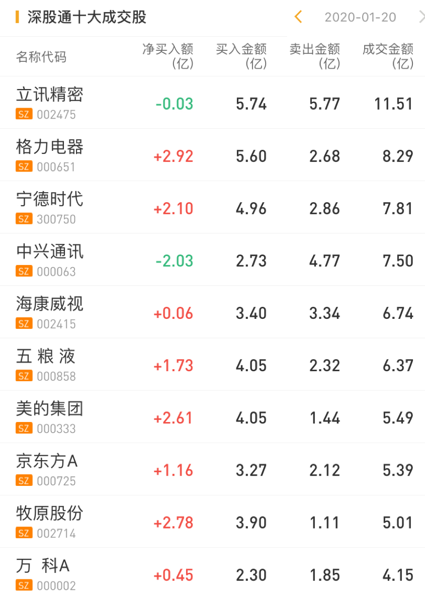 深股通净买入万科A0.45亿元,净买入美的集团2.61亿元,净买入格力电器2.92亿元;净卖出中兴通讯2.03亿元。