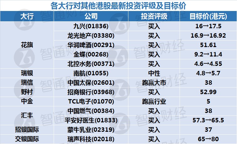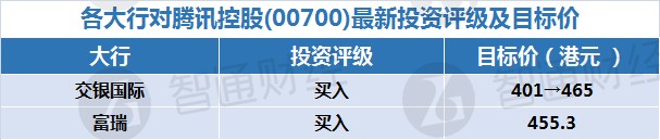 一、各大行对腾讯控股(00700)最新投资评级及目标价