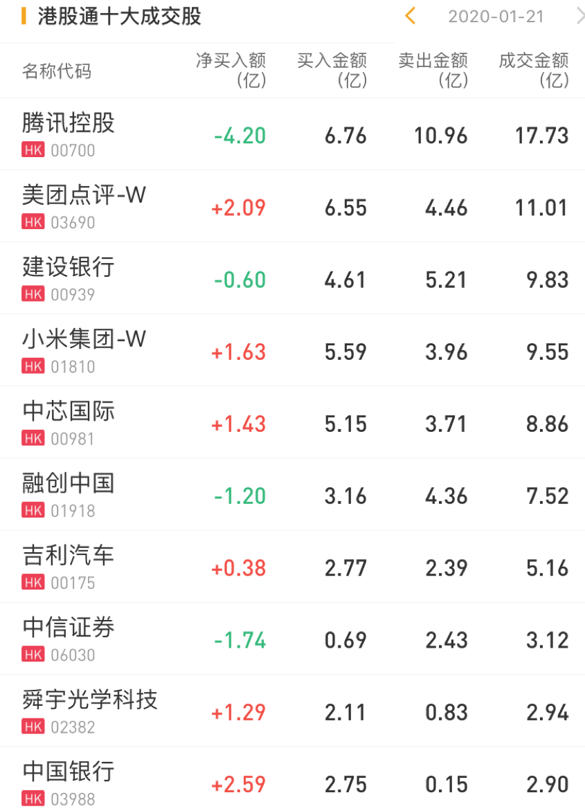 港股通资金今日净流入港股9.07亿港元。今日净买入美团点评2.09亿港元,净买入小米集团1.63亿港元,净买入中芯国际1.43亿港元。