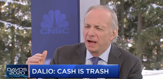 达利欧建议持有全球性和多元化的投资组合,“现金就是垃圾,”他说, “摆脱现金。(市场中)仍然有很多现金。”