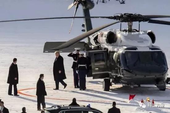 特朗普乘总统专属直升机VH-70A抵达会场 图源:《卫报》