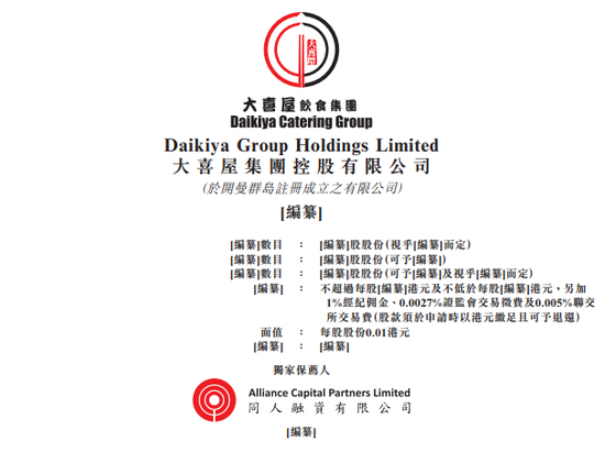近日,大喜屋集团控股有限公司通过上市聆讯,同人融资为其独家保荐人。