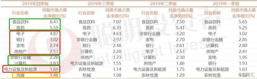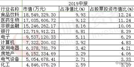 2019年中报显示,公募基金中,股票型基金和偏股混合型基金对食品饮料的配置已经达到了首位。