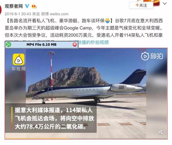 2019年7月,谷歌公司在意大利西西里岛举办“气候变化和全球变暖的超级峰会”,参会者都是名流,他们开着114架私人飞机、豪华游艇、跑车出席这次环保活动。