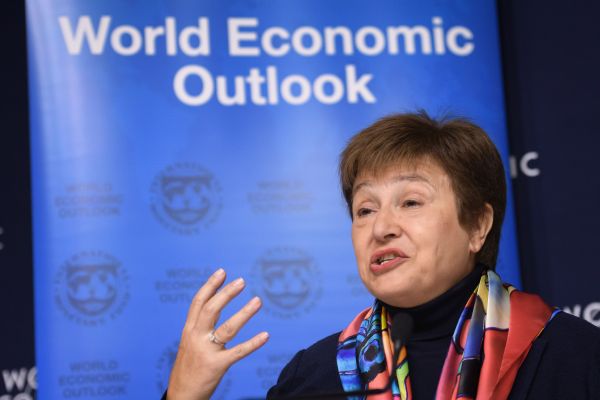IMF总裁格奥尔基耶娃日前在“全球经济展望”主题论坛上发言(法新社)