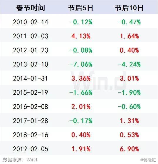 其中,春节后5个交易日中,2011年涨幅最大,达3.58%;春节后10个交易日中,2019年涨幅最大,达7.10%。