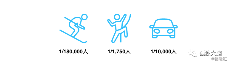 数据表明:每18万名滑雪者中有一人死亡,而每1万个开车者中有一人死亡。