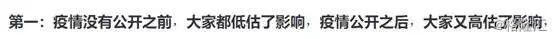 1)疫情没有公开之前,大家都低估了影响,疫情公开之后,大家又高估了影响;