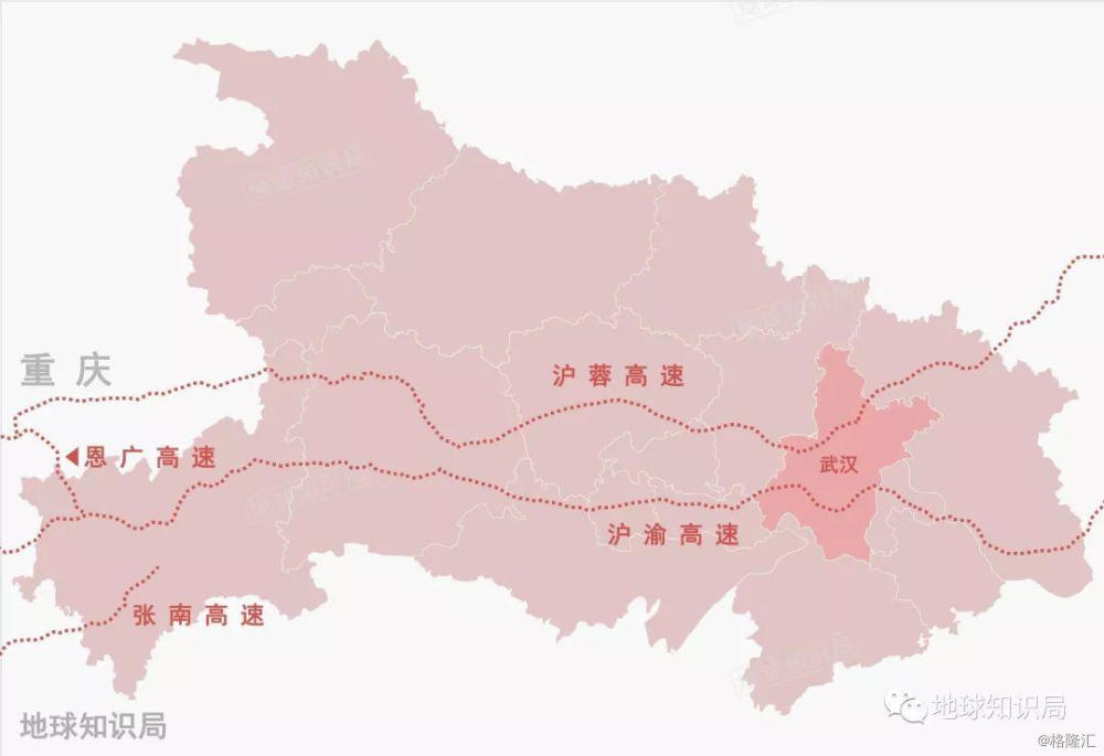 湖北省与六省市相毗邻,若以基本处于中央地区的省会武汉(实际更偏向东部)为参照点,这些国家高速大多是武汉乃至于湖北省对外交通的重要通道,也是其他省份相互之间来往的交通要道。没有了湖北,众多高速公路干线都将受到不小的影响。