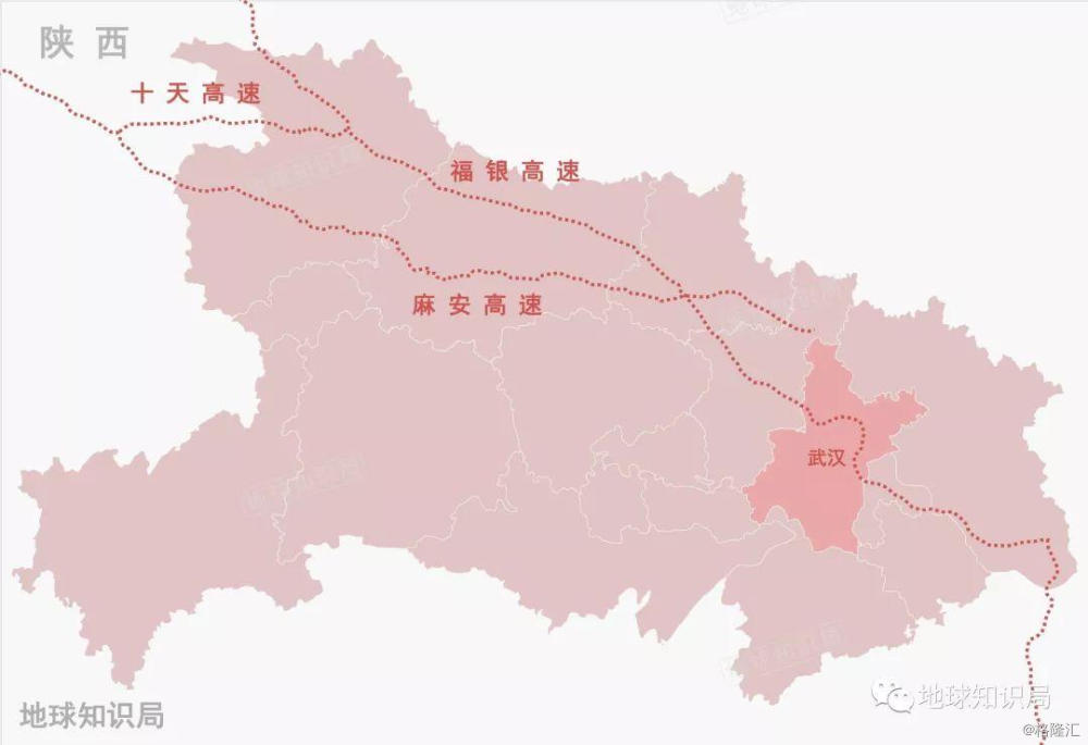 与陕西交界的所有通道,均与武汉的联系较强,麻安与十天共为直达兰州的通道,福银为直达西安、银川的通道,都是武汉前往西北地区重要的通道。