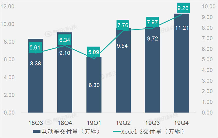 特斯拉第四季度电动车交付总量为11.21万辆,较上一季度的9.72万辆增长15%,较上年同期的9.10万辆增长23%。其中,Model S和Model X车型的总交付量为19475辆,比上年同期的27607辆下降29%,比上一季度的17483辆增长11%;Model 3车型的交付量为92620辆,比上年同期的63359辆增长46%,比上一季度的79703辆增长16%。(腾讯科技整理/无忌)