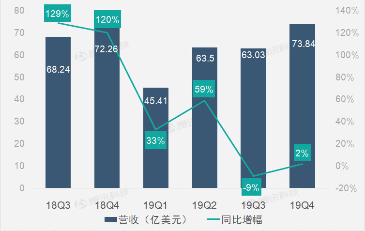 腾讯科技讯 特斯拉(纳斯达克证券代码:TSLA)周三盘后发布了该公司截至2019年12月31日的第四季度财报。财报显示,特斯拉第四季度总营收为73.84亿美元,与上年同期的72.26亿美元相比增长2%;净利润为1.32亿美元,相比之下上年同期为2.10亿美元;归属于普通股股东的净利润为1.05亿美元,与上年同期的1.40亿美元相比下降25%。