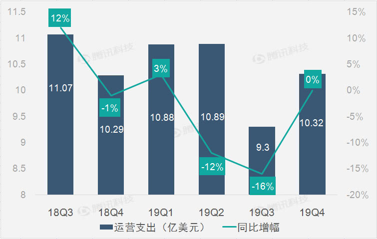 3、运营支出同比持平,销售、总务和行政支出略有上涨;