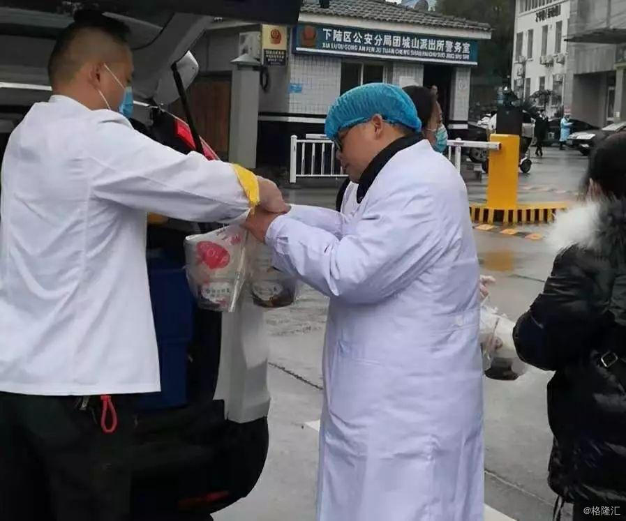 当天,位于阳新的老兴国土豚汤和口味堂,看到三五轩在黄石市区的爱心送餐活动后,都开始联系阳新当地的医院,为当地医护人员提供爱心晚饭。