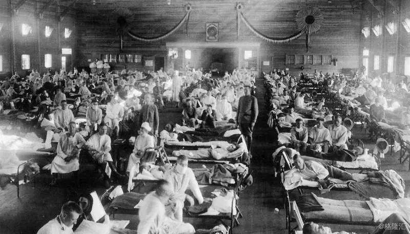 1918年3月11日,这场夺命世纪大流感在美国堪萨斯州的芬斯顿军营爆发,通过战争流传到欧洲一战战场,随后席卷全球,感染了全球超过30%的人口,在那个抗生素还没有诞生的年代造成了5000万-1亿人死亡;