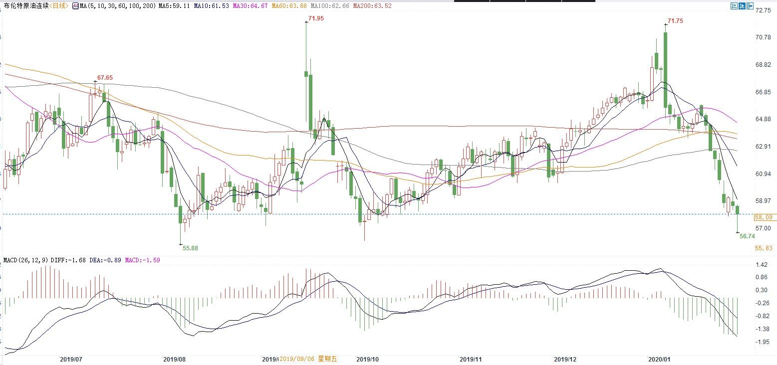 因突发公共卫生安全事件,此前布油价格从1月20日的每桶65美元以上跌至58美元左右。
