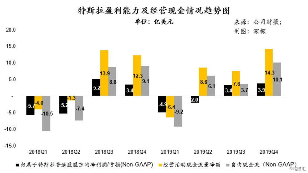 现金流上,特斯拉四季度经营活动现金流及自由现金流均创历史新高,分别为14.3亿美元和10.1亿美元。