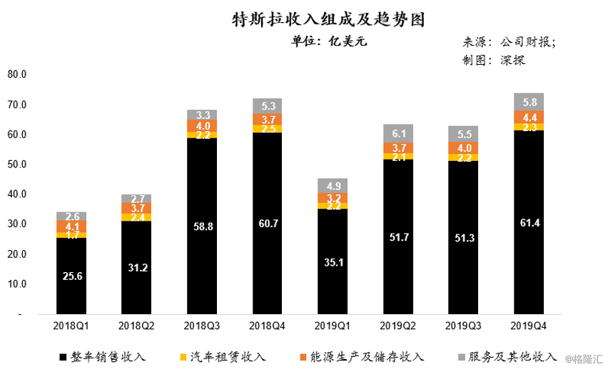 财报显示,特斯拉四季度实现总营收73.8亿美元,同比增长2.2%,环比增长17.2%,创历史新高。同时,也远高于市场预期的70.8亿美元。