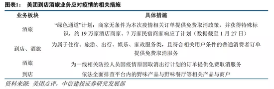 美团的三大业务板块中,到店酒旅业务受到的负面影响将最为深刻,这也是现阶段市场关注的焦点。截至目前,美团在到店、酒旅方面落地的防疫措施汇总如下。