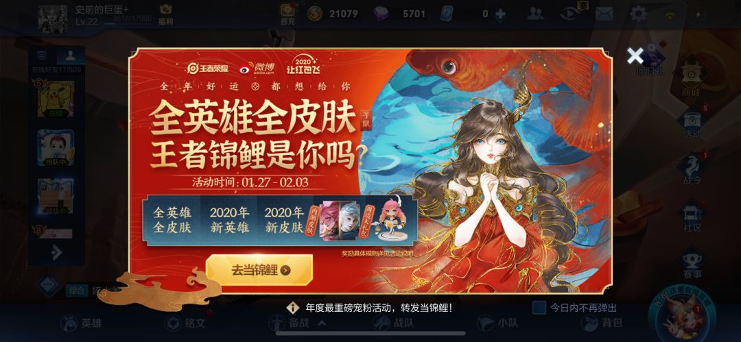 早在1月17日,《王者荣耀》就联手吴亦凡推出了游戏英雄人物李白的主打歌《侠客行》,掀起了一波热度,上线1小时内即荣登巅峰人气榜日榜第1,周榜第5,新歌榜第2。而在游戏内,包含新英雄皮肤、新赛季限定皮肤、年兽大作战、王者自走棋正式版等大量优化更新想必也为20亿的流水带来了不少助力。截至1月30日,《王者荣耀》转发送皮肤大礼包的锦鲤活动,已经有超过139万人转发,26w条评论。