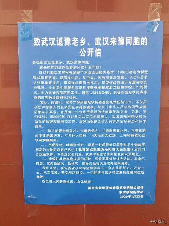 资料显示,河南早在12月底就停运郑州发往武汉的班车,1月21日禁止售卖活禽,1月22日,公布130所新型冠状病毒感染的肺炎医疗救治定点医院。1月23日,呼吁武汉返乡人员及时报告村、街道居委会,并居家隔离14天。1月24日,召开防控工作发布会。