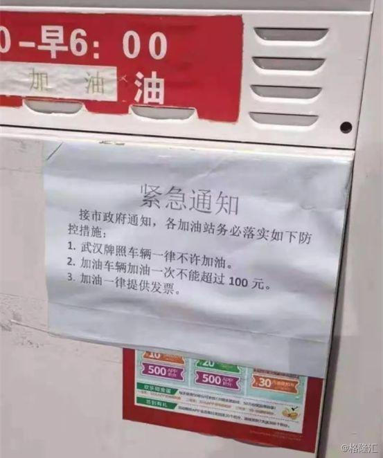 加油车辆加油一次不能超过100元。意思是,非武汉牌照,可以加油,但不能加多,为的就是不让跑远,最好是老实待家里。