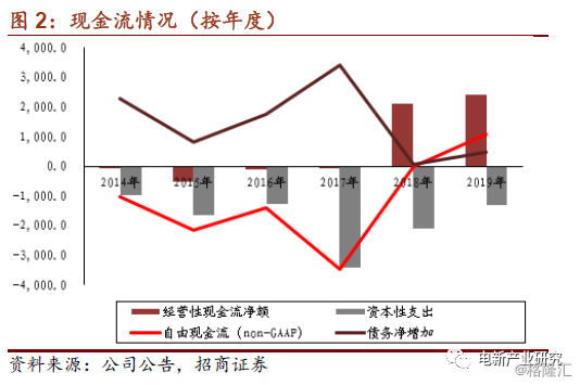 由于经营性现金流净额持续快速增长,以及资本性支出增长比较稳健,公司连续3个季度产生正的自由现金流。