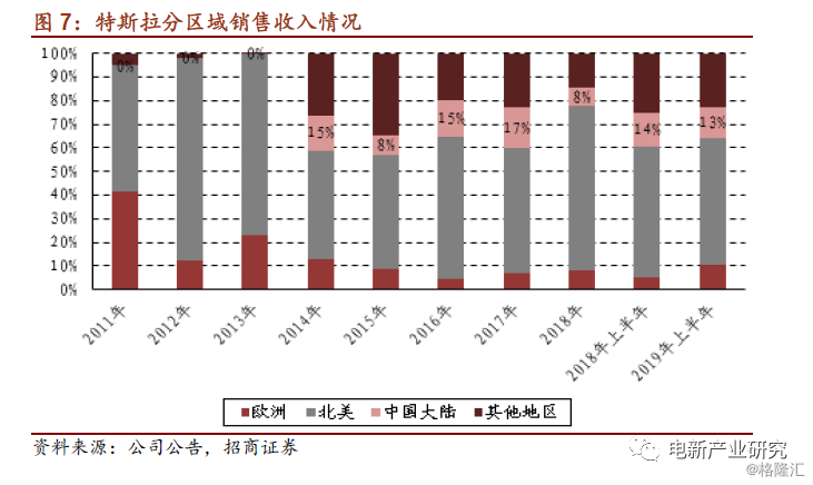 根据公司披露,2019年Model 3在北美以外市场的交付约14万辆,占比Model 3销量约47%。其中欧洲和中国市场分别约9.5和4万辆,占比约32%和13%。