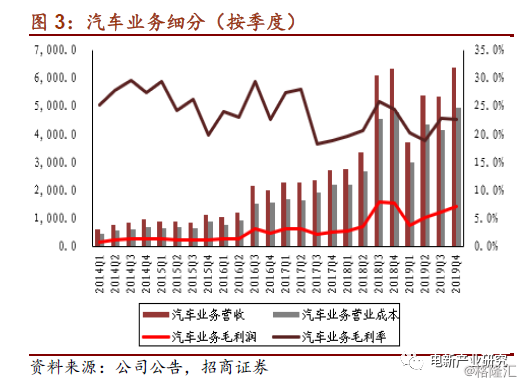2.销量创新高,成本管控能力持续强化:2019年公司销量约36.8万辆,同比增长49.8%,其中Model 3约30.1万辆,同比增长106%,销量再创历史新高。继18Q3-Q4后,19Q3-Q4公司再度连续盈利,主要得益于销量大增对固定成本的摊薄,以及持续强化的费用管控力。考虑到Model Y与Model 3共线生产、新产能单位资本开支大幅降低等因素,未来公司盈利能力有望维持。