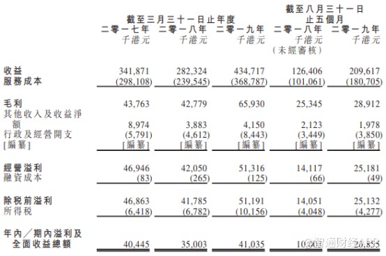 招股书显示,在2017—2019财年, 生兴控股的总营收从3.42亿港元增至4.35亿港元,复合增长率为12.8%;公司同期净利润则分别为 4044.5万港元、3500.3万港元以及4103.5万港元。