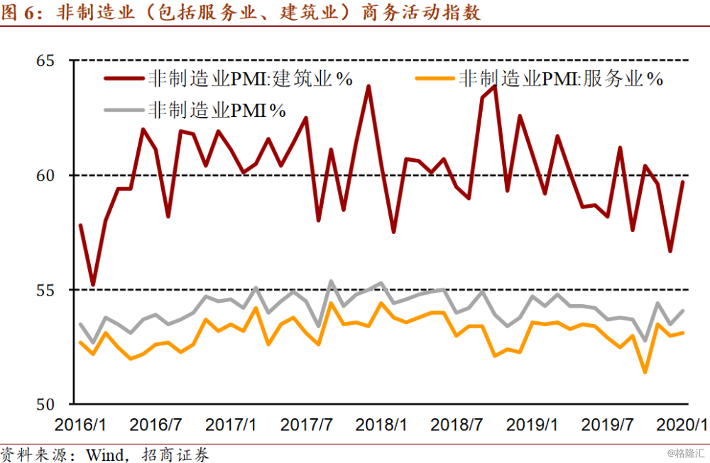 非制造业(包括建筑业、服务业)PMI自2018年下半年以来总体是震荡下行的,1月则出现了反弹,特别是建筑业。但从SARS经验来看,居民消费、交通运输、住宿餐饮等更容易受到疫情冲击。