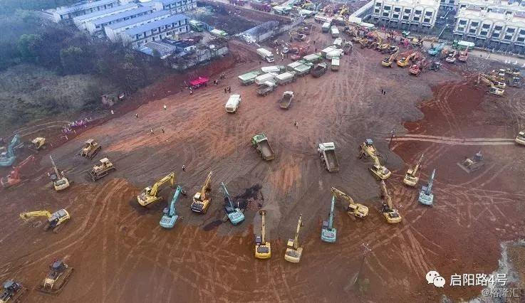 昨天那边还是一片空白地,今天早上基本上两层楼的房子都起来了。整个医院都是装配式结构。