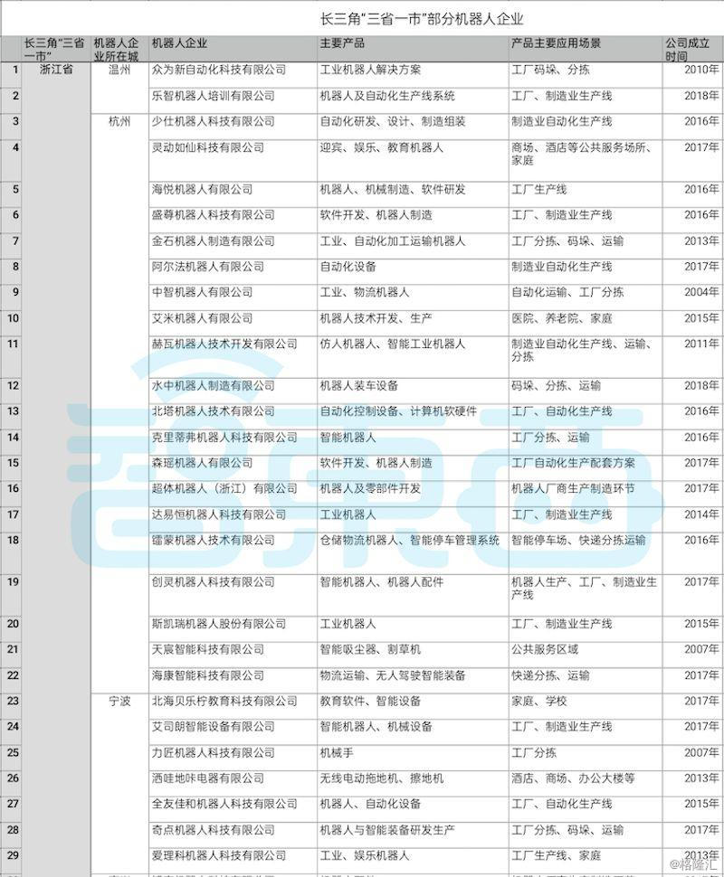 ▲长三角地区部分机器人企业名单(文末附完整表格)