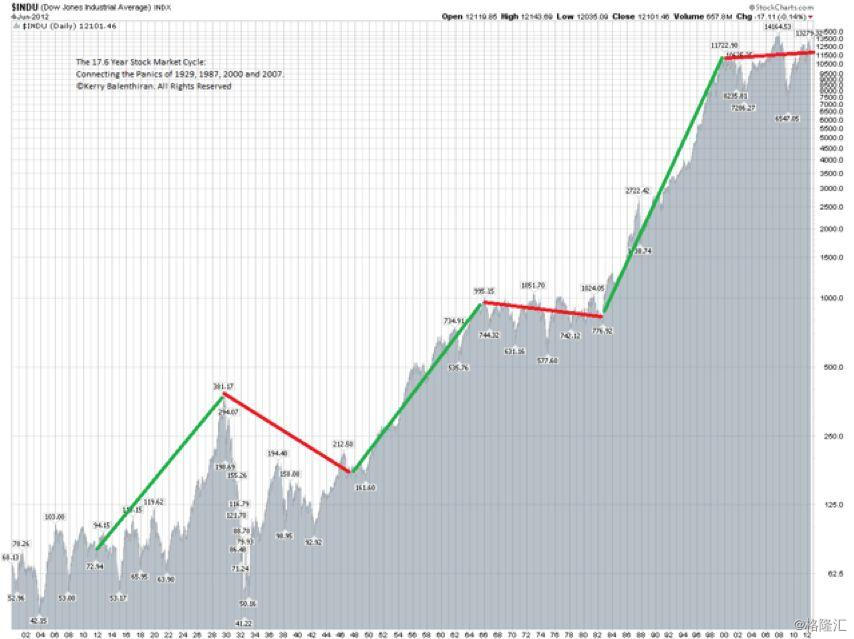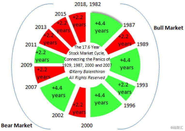 著名的投资大家如巴菲特(Warren Buffet)和罗杰斯(Jim Rogers)都曾经在著述当中写到过长约17到18年的股市周期,分析师们制作的18年股市牛熊周期图表就更是数不胜数。总之,大约18年的周期已经是太多股市评论家最熟悉不过的东西了。