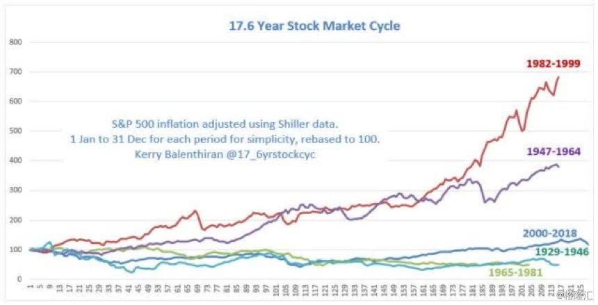 在笔者记忆当中,是凯辛(Art Cashin)最早提出了17.6年股市周期的说法,他在接受CNBC采访时以此解释了为什么认为熊市会一直延续到2017年。CyclePro Outlook的威廉姆斯(Steven Williams)也有关于17.6年股市周期的研究发表。