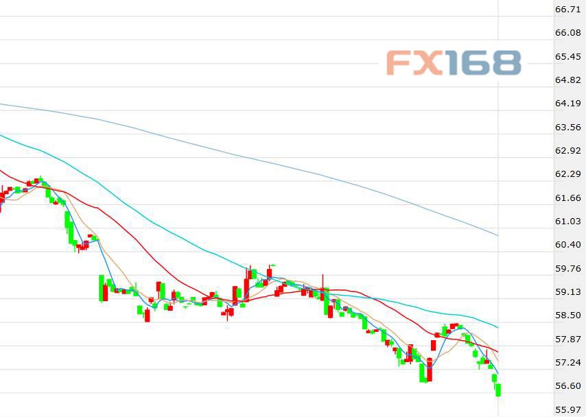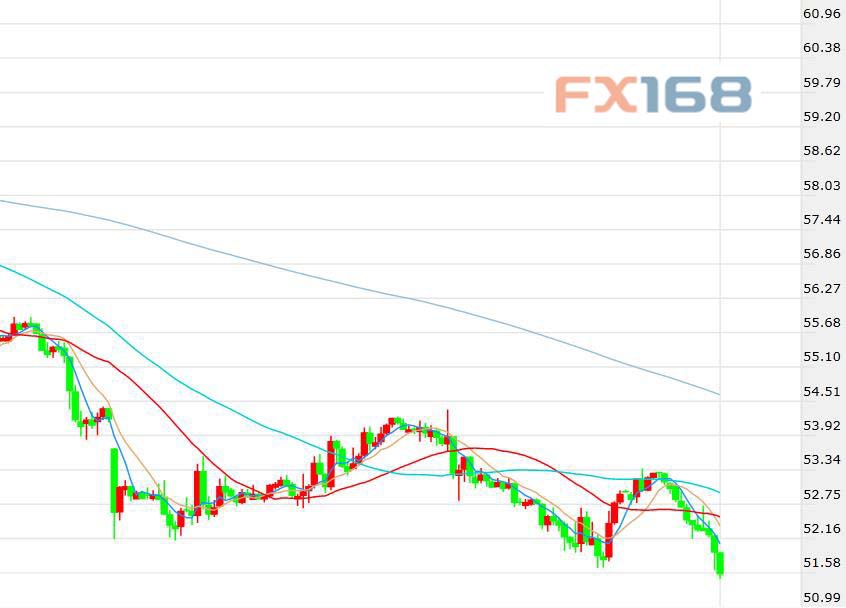 (布伦特原油期货价格60分钟走势图,来源:FX168)